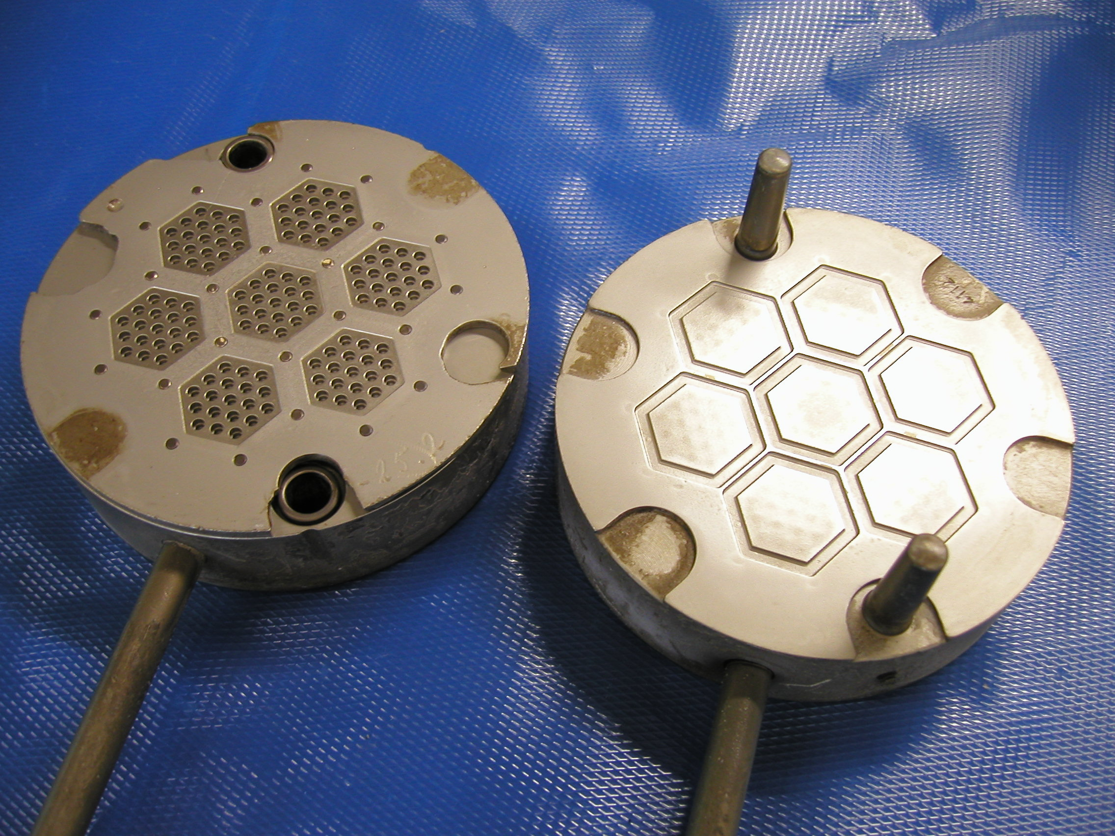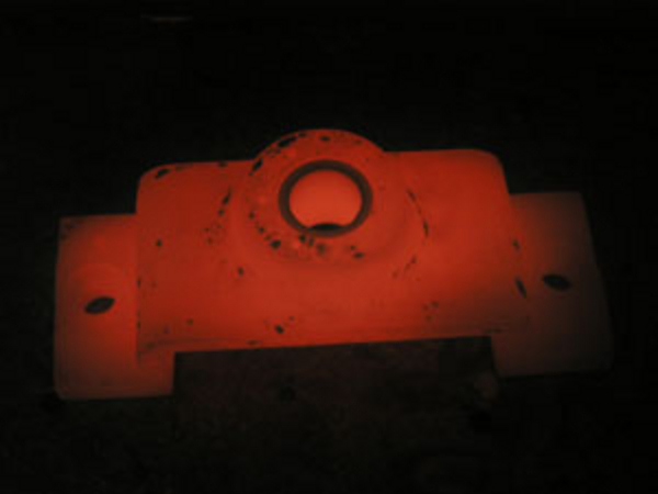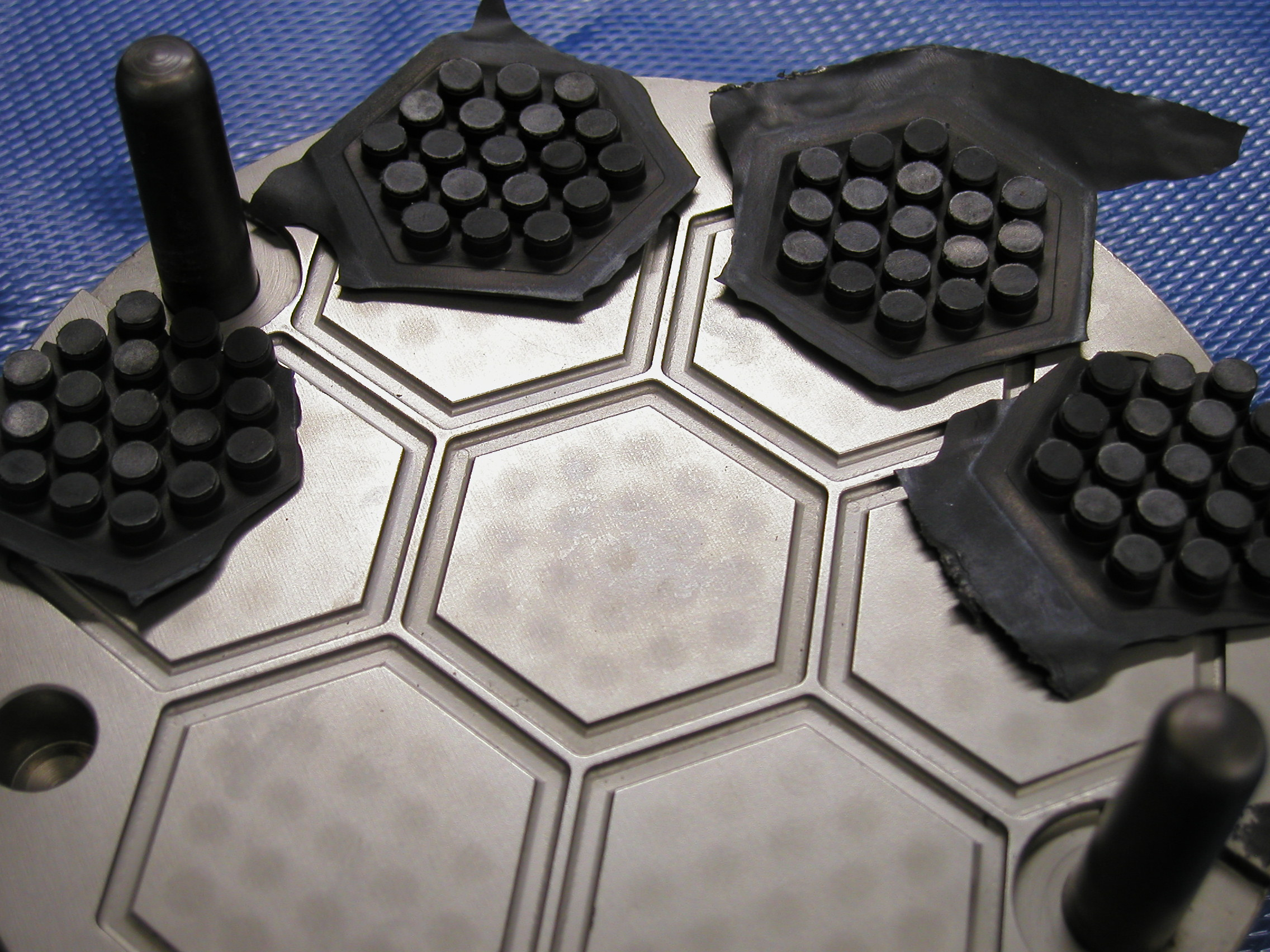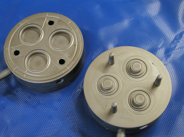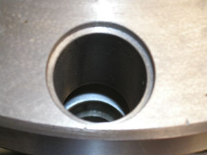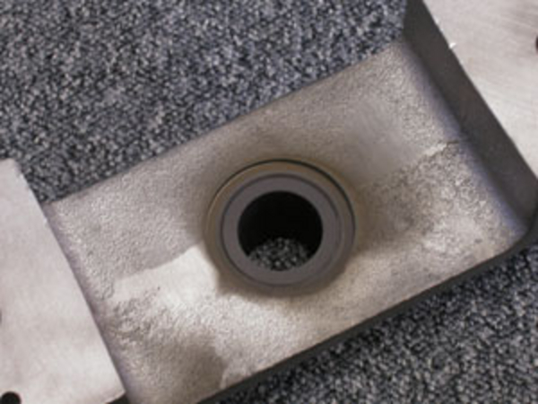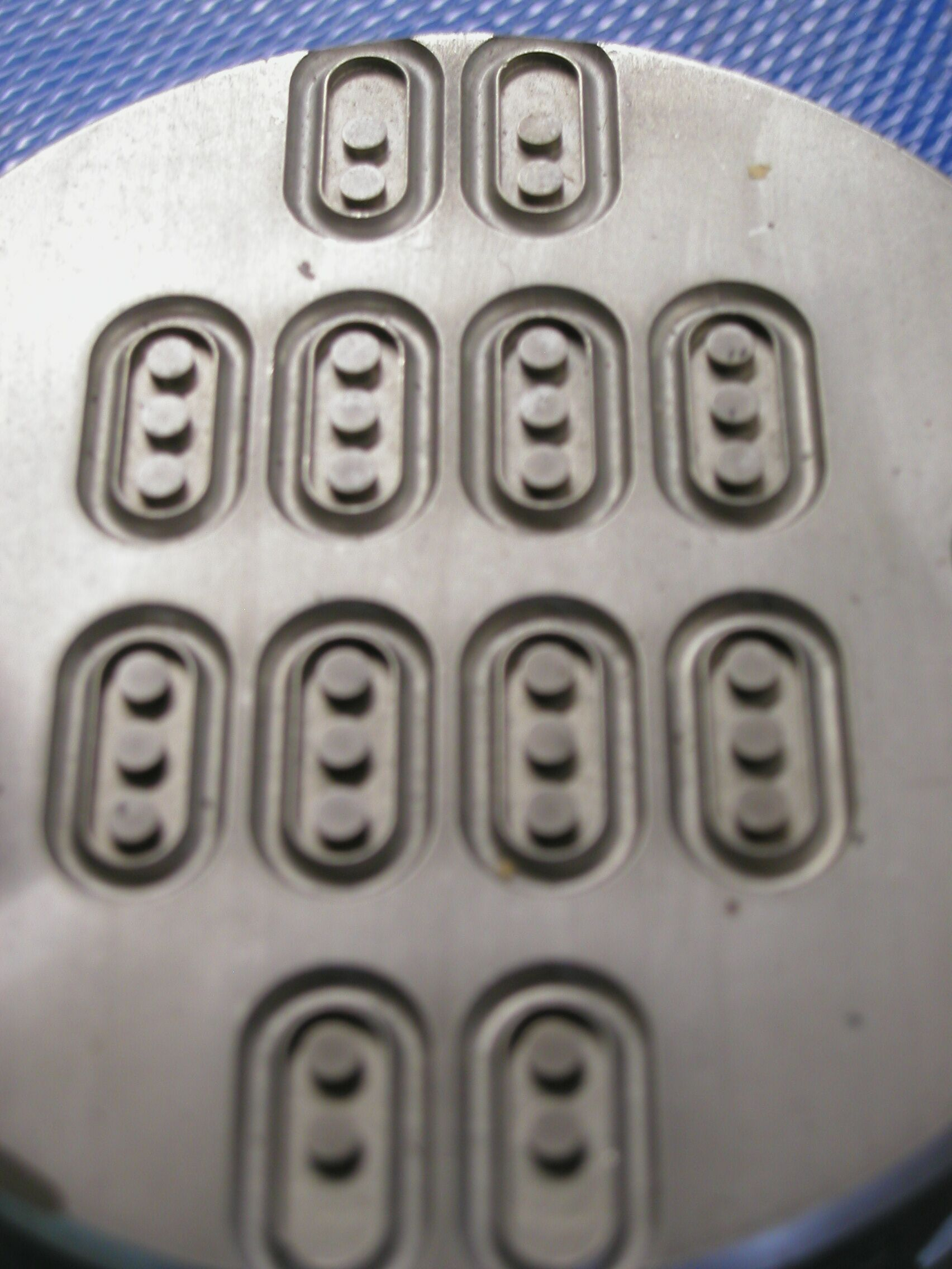 Alle Kolbenführungen waren verschlissen. Es wurden alle Kolben ohne Führungsbuchsen direkt im Rundtisch geführt. In der mittleren Ringfläche, in welcher die Tablettenpulverzuführung stattfindet, war ein massiver Verschleiß durch Abrieb zu sehen.