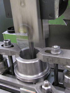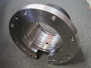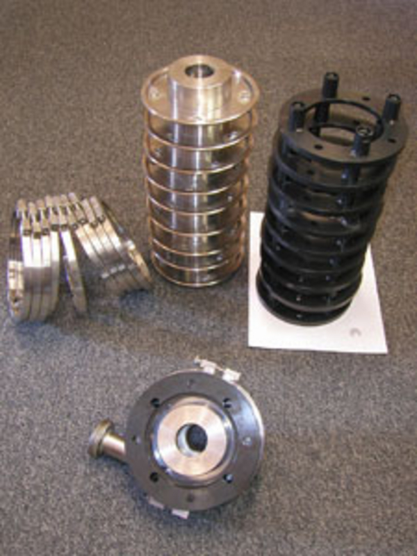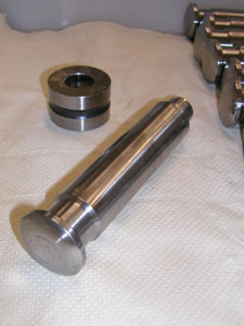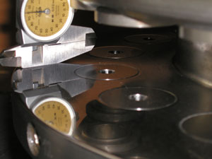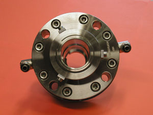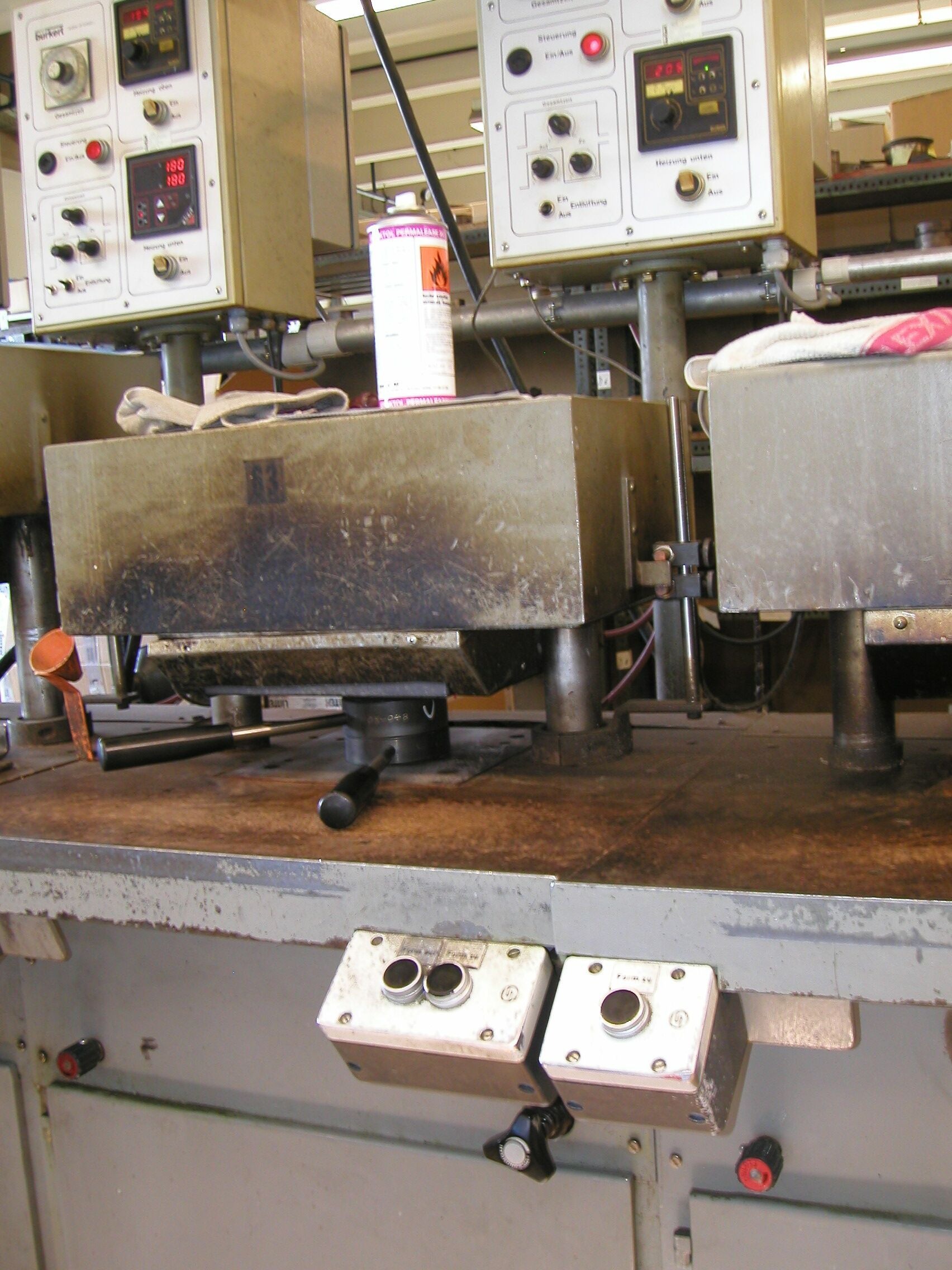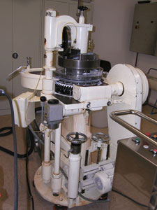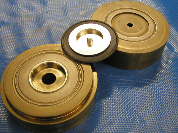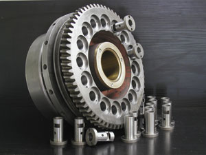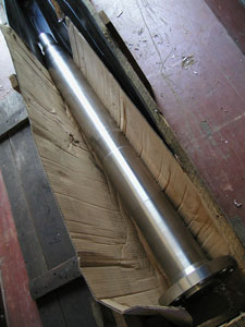 Anfertigung der Buchsen (inkl. Härten und Schleifen) und Verschraubungen sowie Aufspindeln aller verschlissenen Bohrungen des Rundtisches von oben und unten, so dass beide Kolben (oben und unten) wieder exakt auf einer Achse liegen und im Hundertstel-Bereich aufeinander treffen. Hierzu wurde jede Bohrung einzeln mittels Zentrifugator aufgenommen. Jede Kolbenführungsbuchse wurde von Hand passgenau eingeschliffen. Der Mitteltisch überdreht und poliert, anschließend von Hand mit Läpp-Mittel und Diamantpaste auf Hochglanz gebracht.